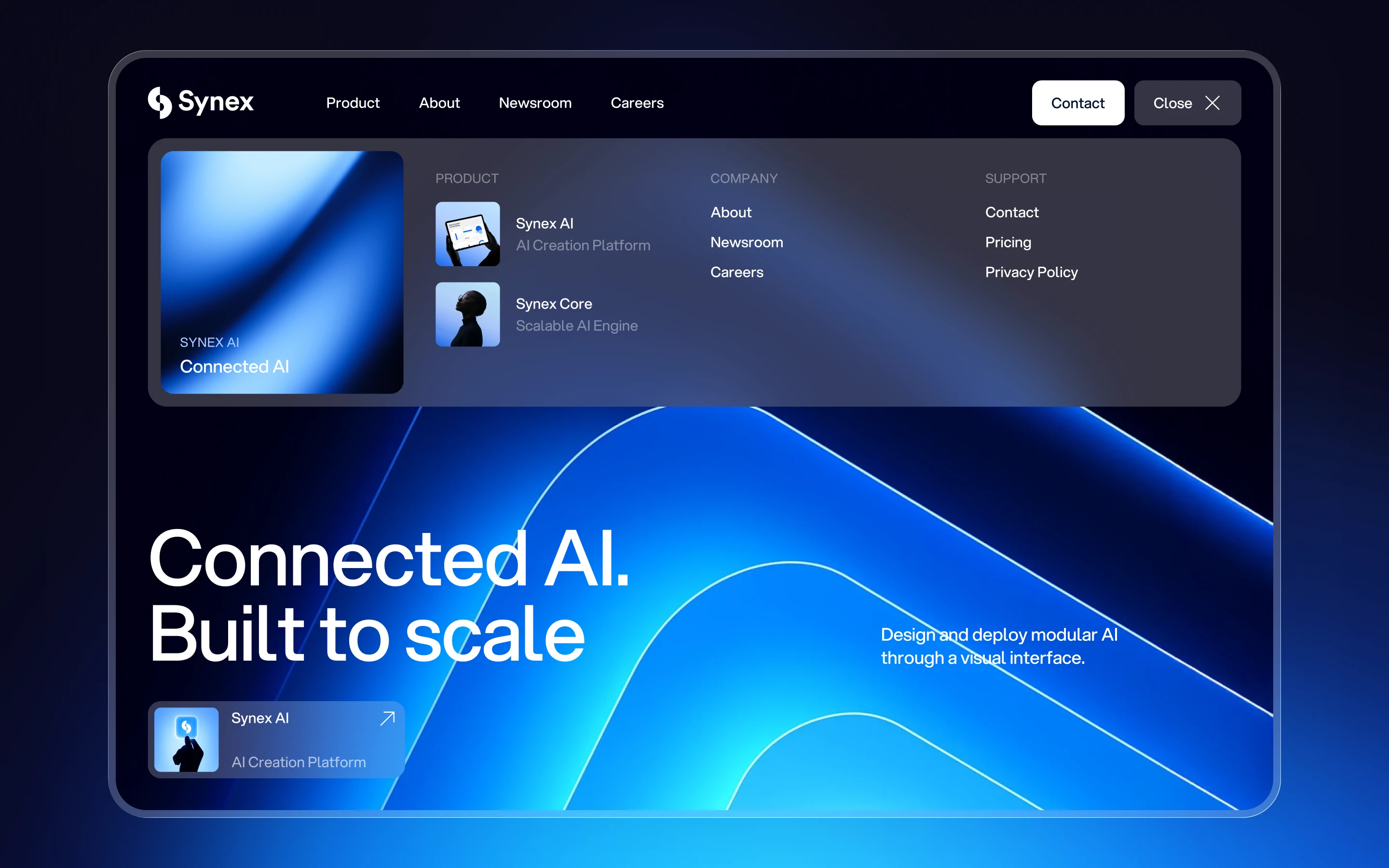 Synex is a premium Webflow template for AI, SaaS, and enterprise technology brands. Designed for clarity, scalability, and high-trust digital presence.